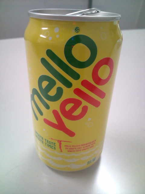 なんと、むかーしよく飲んでいたあの黄色い缶ジュースを自販機で見つけたので思わず購入。